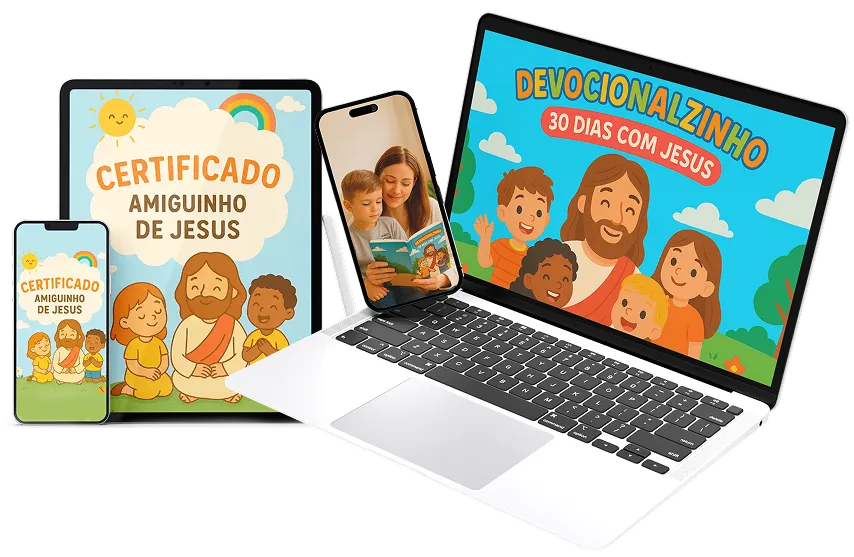 Um material completo, prático e transformador para ajudar você a cultivar a fé cristã no coração do seu filho de forma leve e divertida!